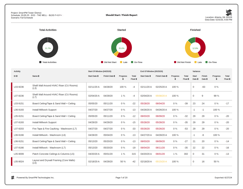 “The Should Start/Should Finish report is a quick and easy way to see what our schedule says should have started and should have finished in an update period.”