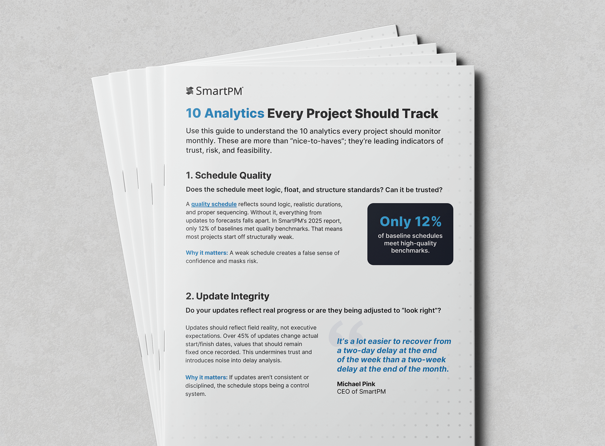 Use this guide to understand the 10 analytics every project should monitor monthly. These are more than “nice-to-haves”. They’re leading indicators of trust, risk, and feasibility.