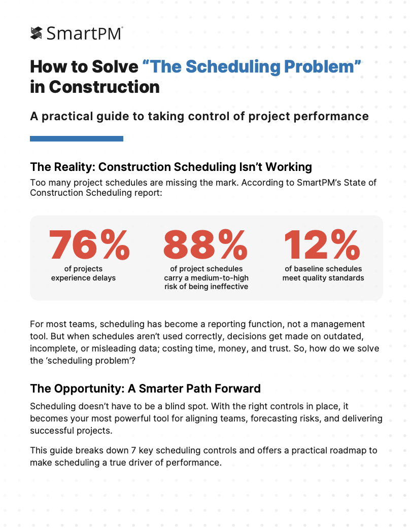 This guide breaks down 7 practical controls every construction team should implement to turn schedules from static reports into active management tools that improve visibility, accountability, and project outcomes.