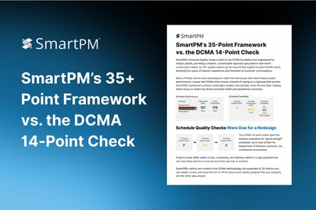 See how SmartPM modernizes the DCMA 14-Point Check with 35+ Schedule Quality metrics. Discover how customizable metrics give teams accurate insights and control over schedule quality.