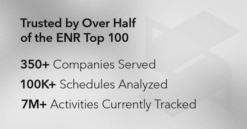 SmartPM’s advanced project analytics have earned the trust of more than 350 companies, including over half of the ENR Top 100. To date, their proprietary Schedule Intelligence™ technology has analyzed more than 100K project schedules and is currently tracking over 7M activities worldwide.